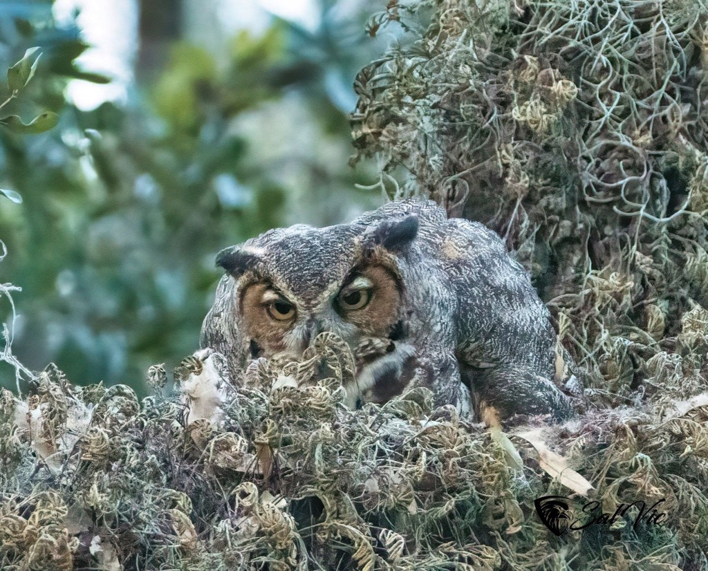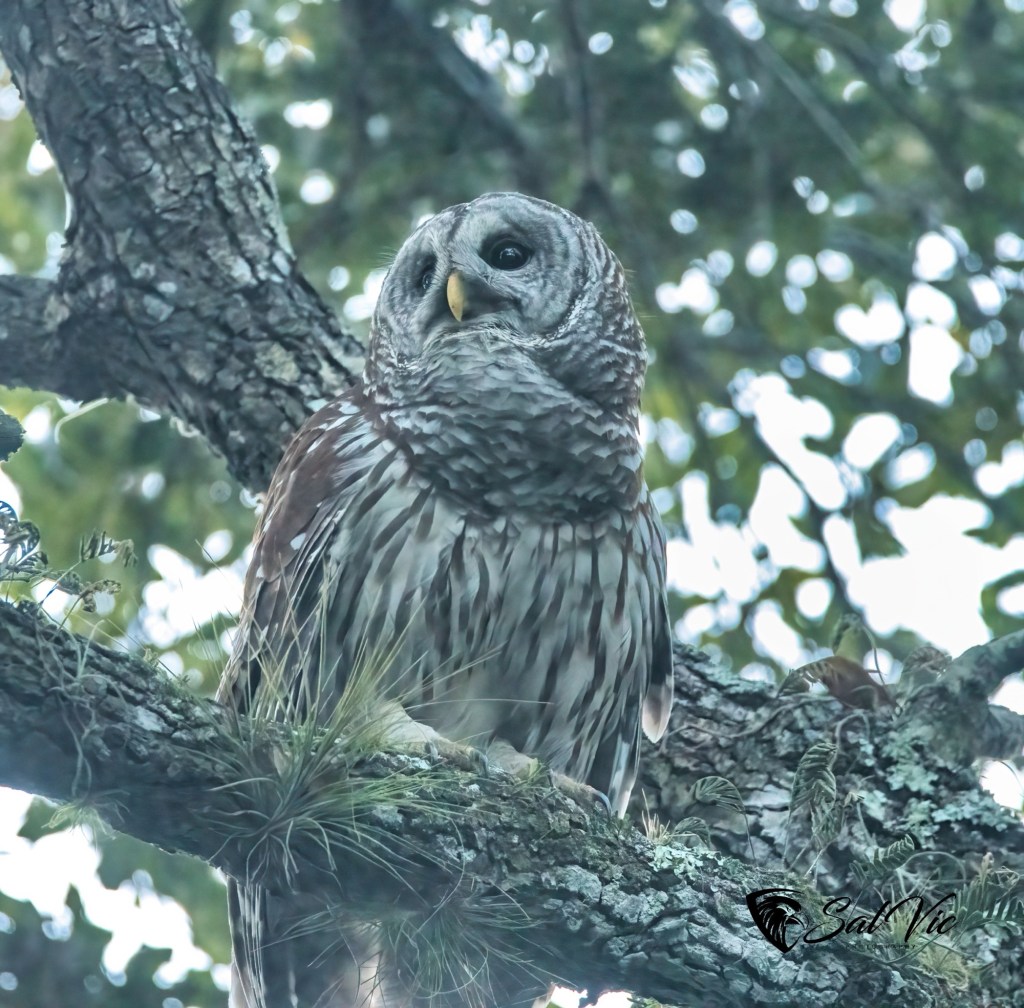 The morning was foggy, dense fog. Midday it cleared off but then it was hot. About 4 pm we went out looking for owls. They were sitting in trees dripping with Spanish moss and in poor lighting, making it hard to get a good shot. Thanks to Vic’s editing skills I have these to show you.