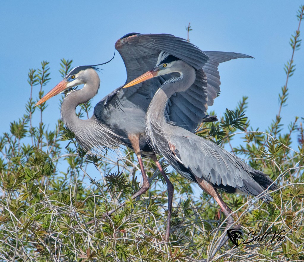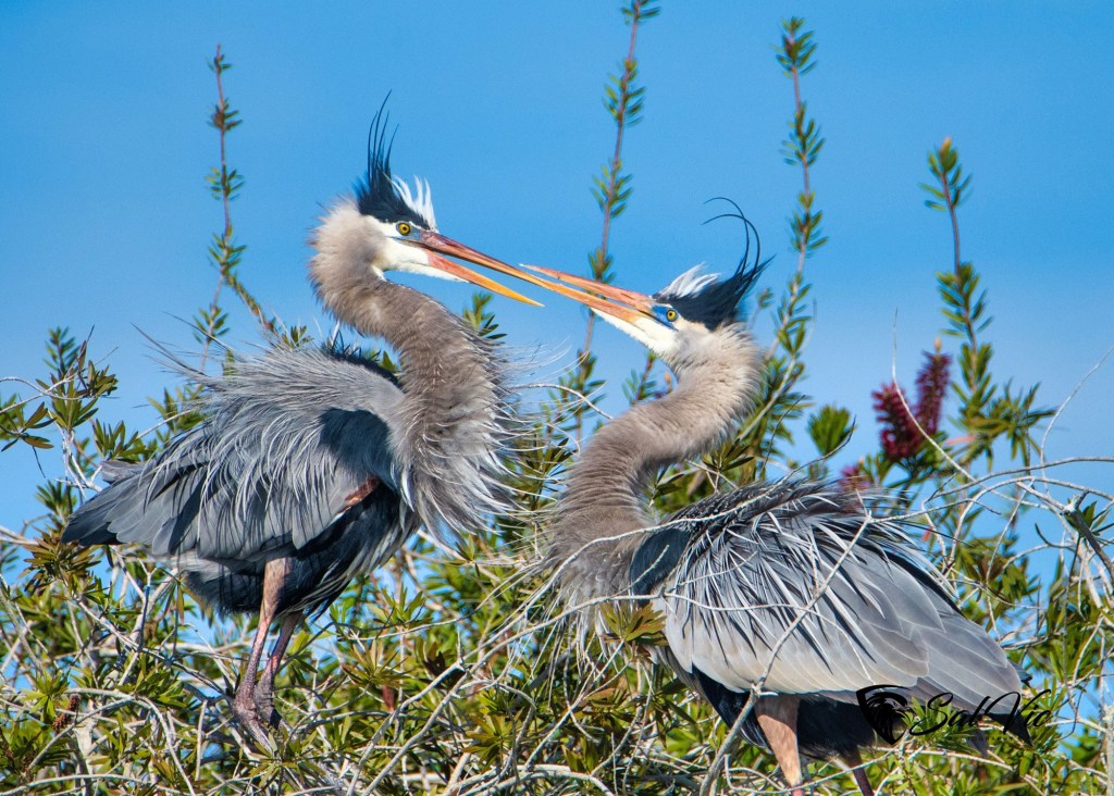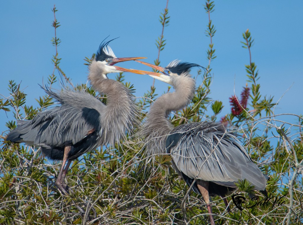 These Great Blue Heron are sitting in a tree on the property of a man we met (Dana) down at Lake Marion, a campground/fishing marina near us.