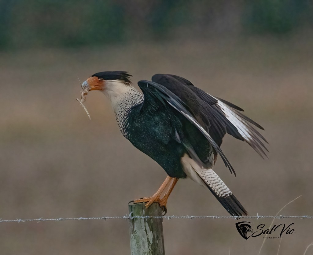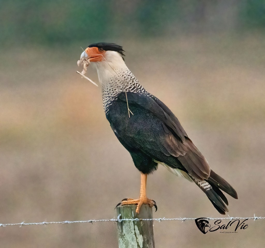 We’ve been looking for Caracara and finally found some! They are vultures yes, but beautiful vultures. They will eat carrion but today it was just a plant.