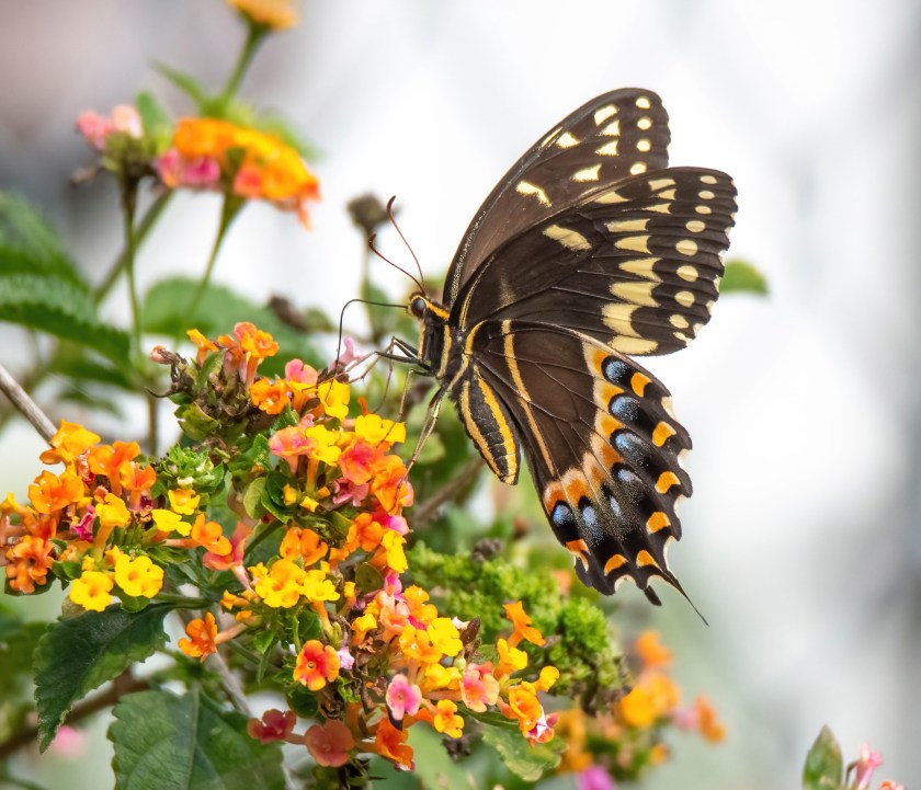 This is a gorgeous butterfly, and perched on lantana it’s just plain spectacular. Victor was out on the golf cart riding around the resort when he saw this butterfly. Even on a phone screen it’s beautiful but I hope you can look at it on a larger screen.