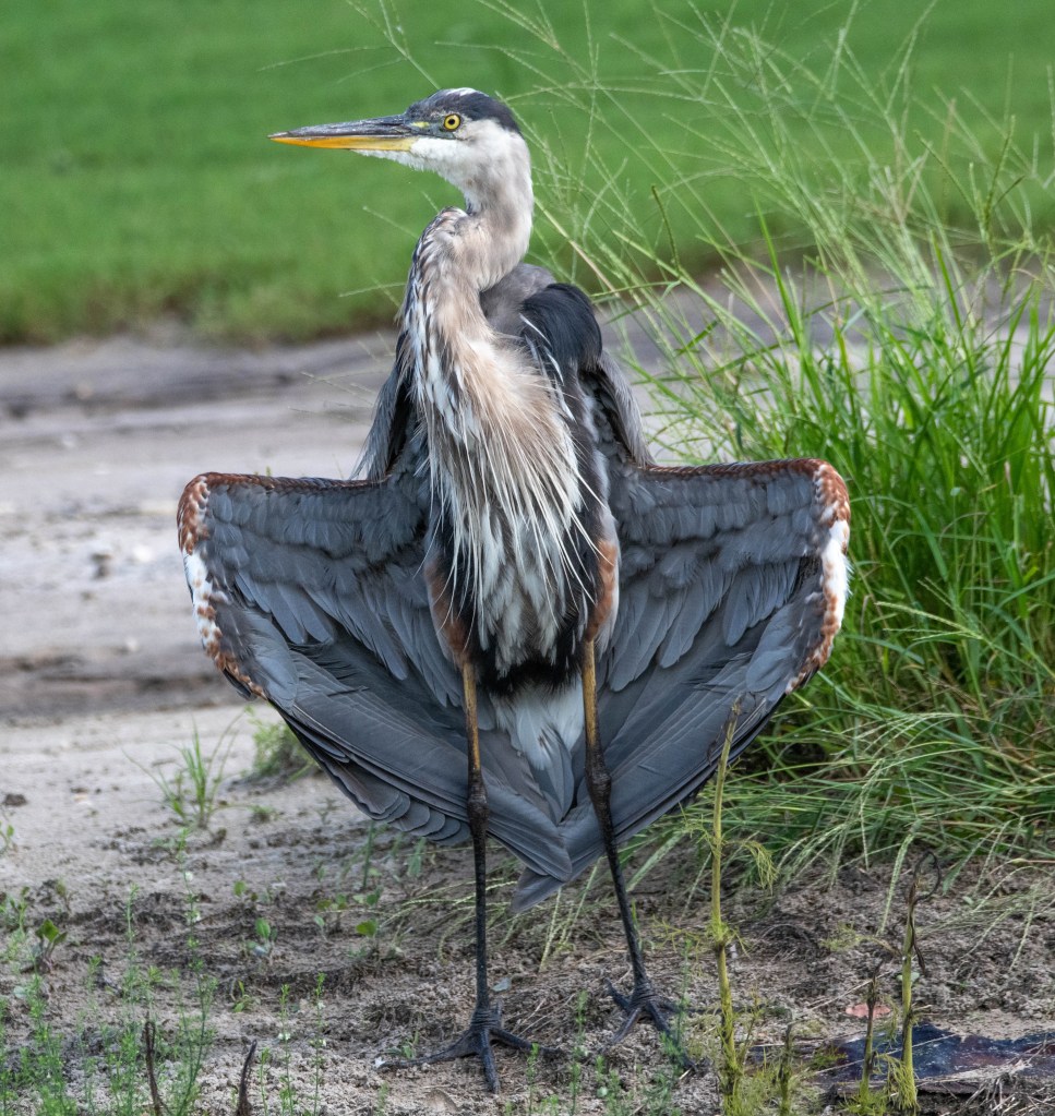 I got this great blue heron in the funniest pose, it just cracks me up. We were on our way out of lake Apopka wildlife drive last Sunday afternoon when I saw him standing there.