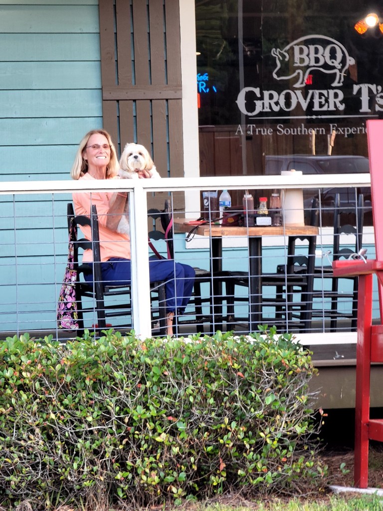 Yesterday we stopped in Milton FL and parked in the parking lot of Grover T, a BBQ place. Harvest Host is an app (!). Places and people that have room allow you to stay overnight usually for free. They might want you eat in their restaurant or make a $10 donation but essentially it’s free. We don’t need any power hookup because we have solar and lithium batteries – lots of each. We ran the AC and were totally comfortable and only used 20% of the battery bank overnight. The sun replenished that pretty quickly. It’s amazing to be off grid, we love it.