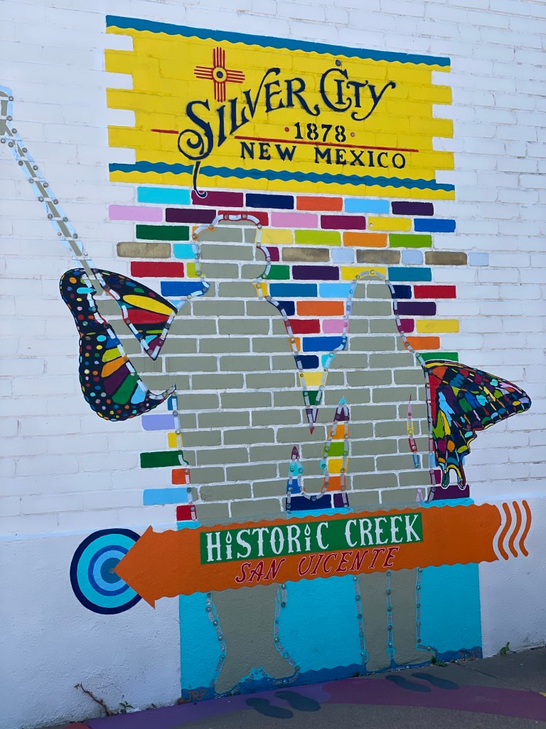 We went into Silver City, what a cute town. It’s clearly an artists place, murals everywhere, hippies and backpackers everywhere . Had lunch outside, roast beef sandwiches from Diane’s Kitchen. We got dinner all made also from Diane’s Kitchen for later, just heat it up. Most of the shops were closed since it’s Sunday. Window shopped and took pictures of the artwork/murals. Got back to Bob’s around 4 pm. Zoe was brown where she used to be white so she got washed up in the shower.