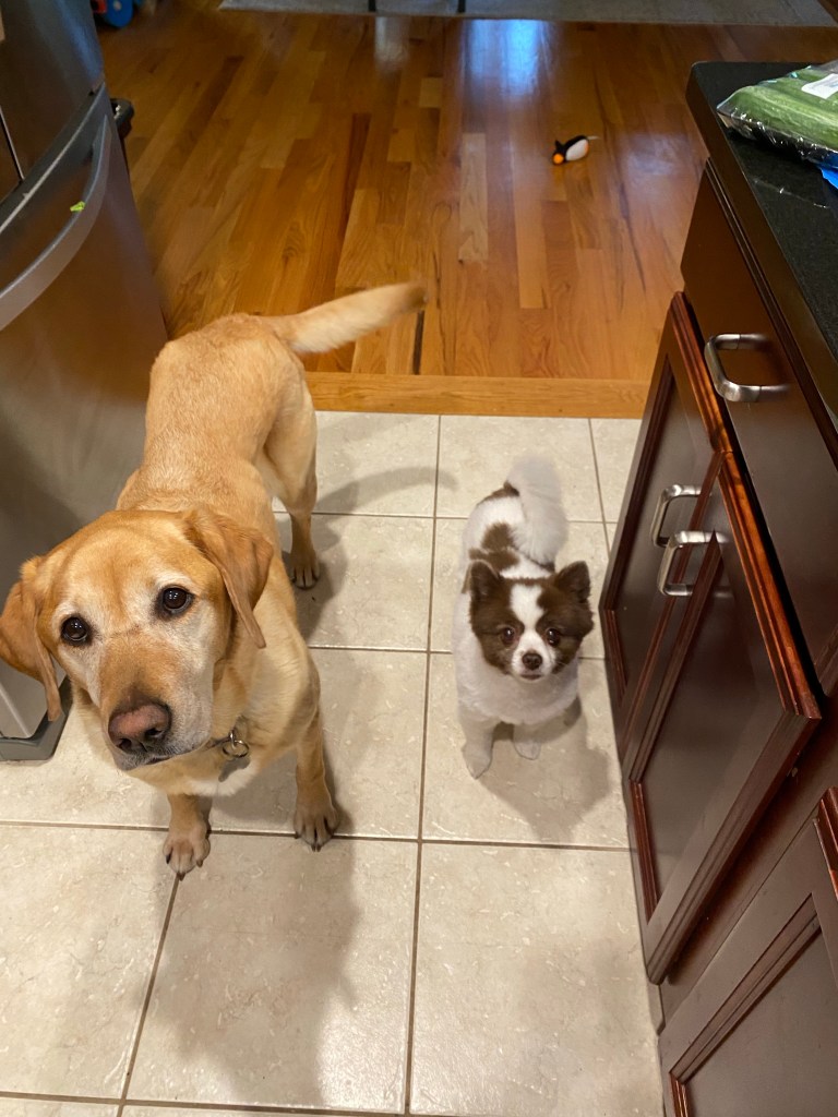 Rider dogs: Winnie a golden lab and Punkin a Pomeranian