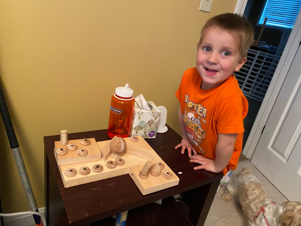 Finn brought home his woodworking project. It’s very cool and he had a story to go with it about him in the water park. The class is taught by a local woman, 85 years old. I say she’s a national treasure.