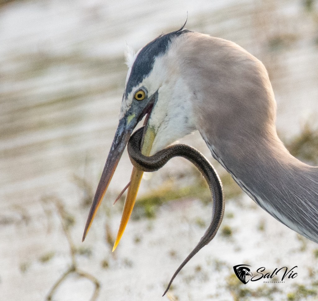 That blue heron eating a snake, yuk! LOL! Love the deck color.