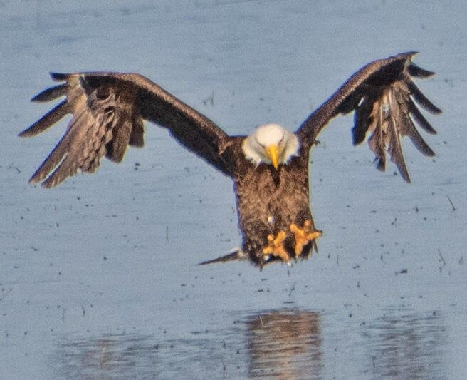 We were at the boat launch this morning, of course. This is a male eagle.