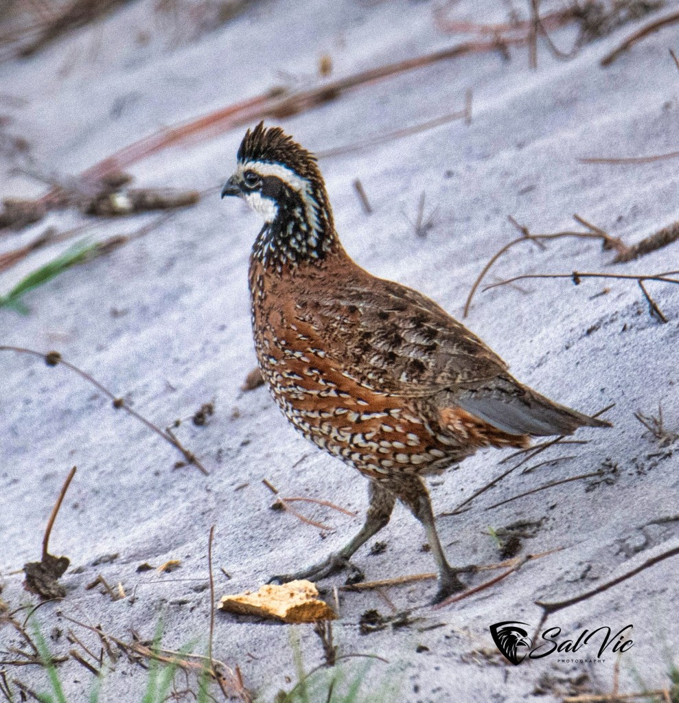 These birds’ call sounds like Bob White! We saw him on Joe Overstreet just off the edge of a sod farm field.
