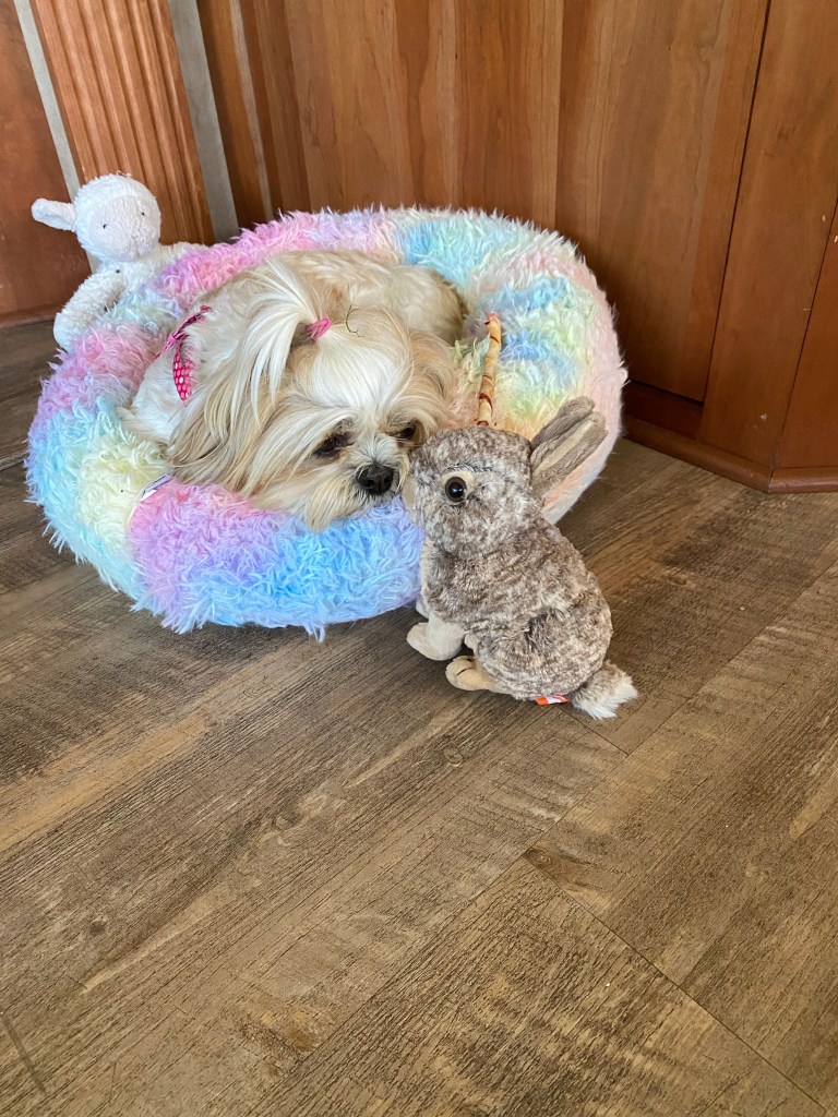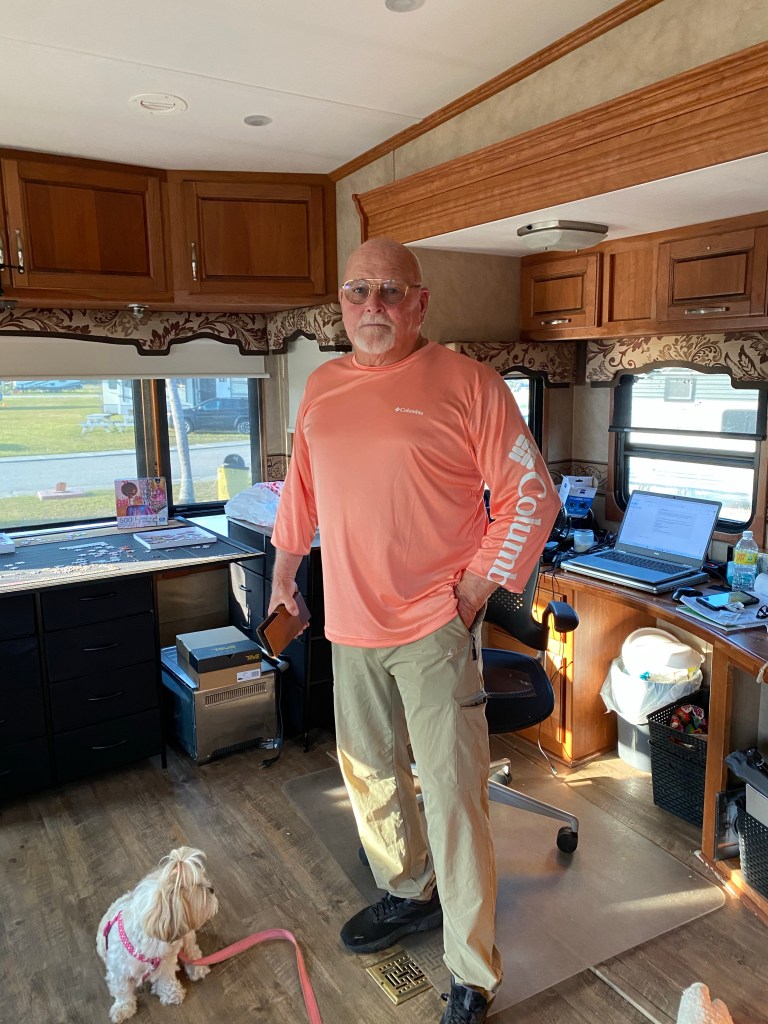 There are several other campers here. We talked to two couples traveling together from Quebec. Dennis, Pat, Linda and Yogi. There was a story about the yogi nickname but they said it was a very long one and we didn’t hear it. Each couple has a class C. One couple had a container on a platform on the back where they stored their e-bikes.