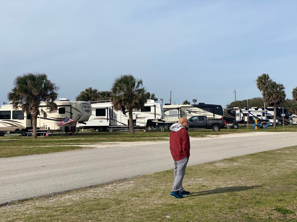 The good news is the gate locks at 4:30 pm, keeps the riff raff out. We have the code so we aren’t trapped in here.