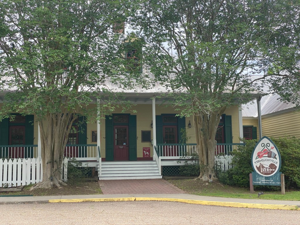 We stayed overnight in the parking lot at Vermillionville Living History Museum in Lafayette LA. huge parking lot, lots of green areas, beside a muddy river but there’s a beautiful pond with water lillies. Vic got shots of a mother Wood Duck and her many babies in the pond.