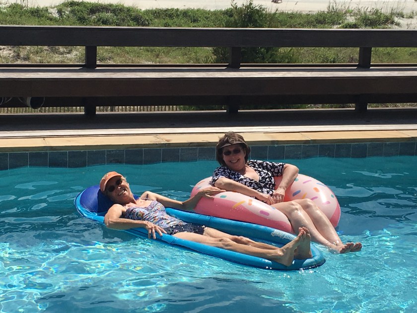 3 of the ladies jumped into the pool this morning after their walk on the beach.