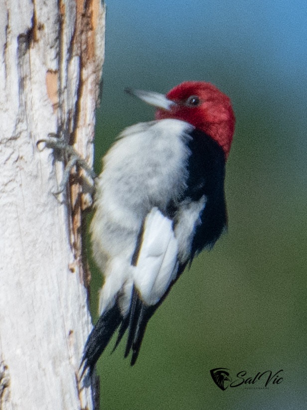Red headed woodpecker (immature). You should see the beat up tree this bird was all, no leaves at all, looks like it will fall over in the next minute.