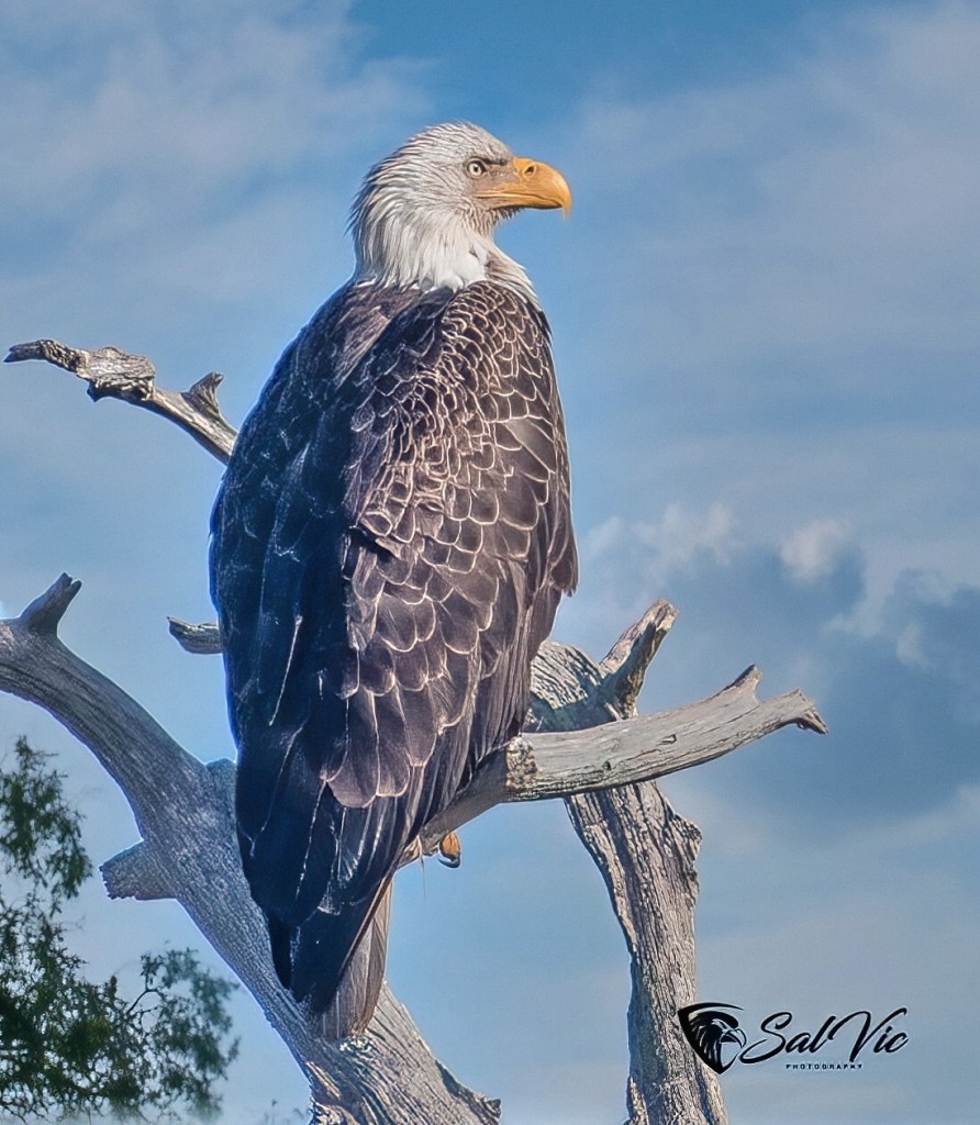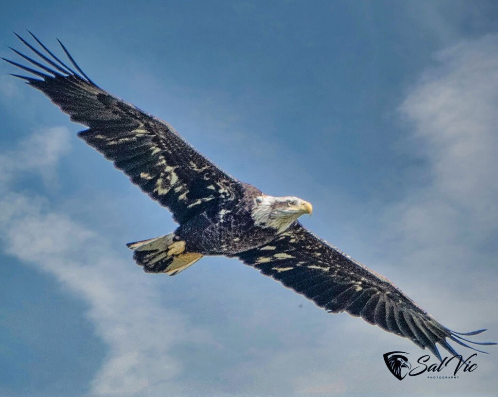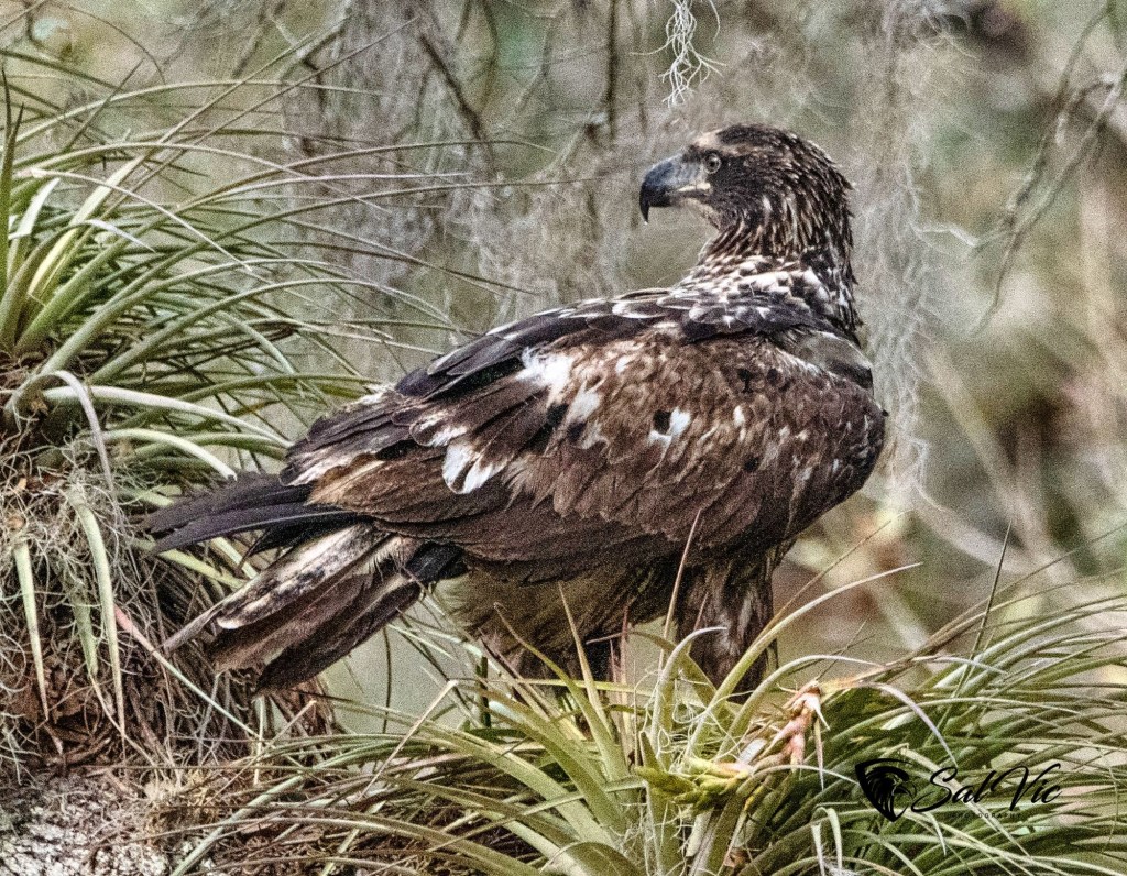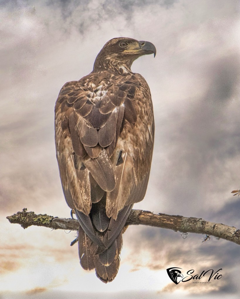Immature eagle. It looks like a dusting of snow on the feathers doesn’t it?