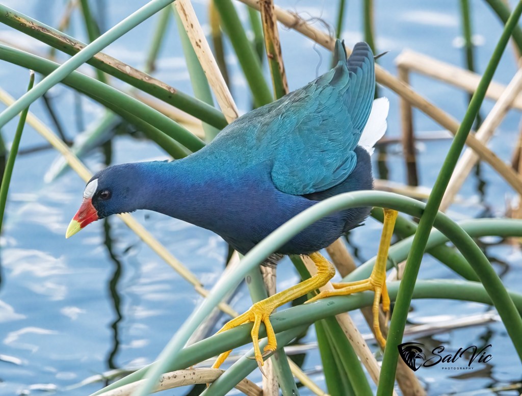 Purple Gallinule poking around in the reeds.