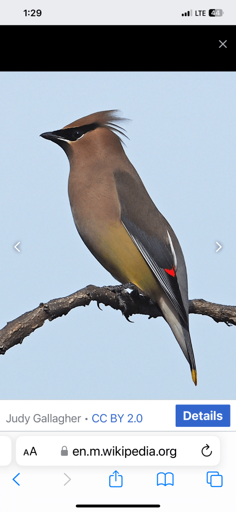 We saw Cedar Waxwings but unfortunately our shots did not come out well. ☹️ it’s a pretty bird. This morning we saw some wild turkeys but didn’t even have a phone with us to take a picture.