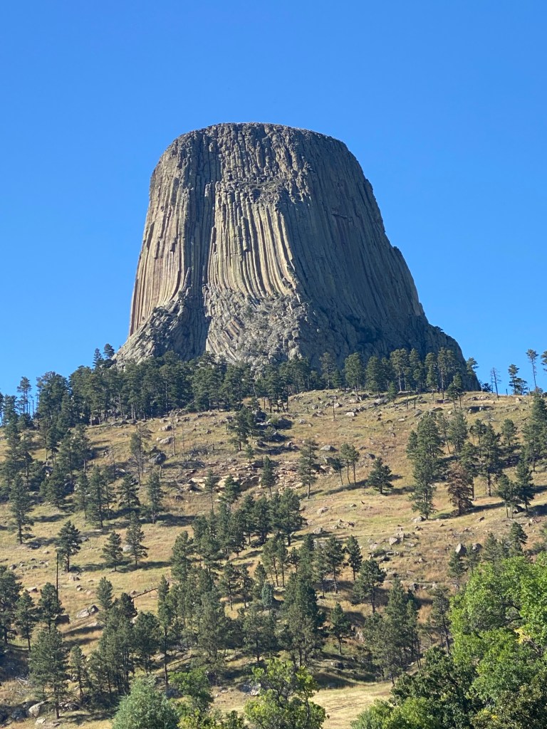 Second stop is to see Devil’s Tower, the first national monument, established in 1924 by Theodore Roosevelt. Since it’s part of the National Park Service we got in for free and paid $20 to camp for one night. Every available spot is taken, many of them by people with tents. Many of these “tenters” are older people, old as in after they lay down in a sleeping bag will they be able to get back up? Lol.