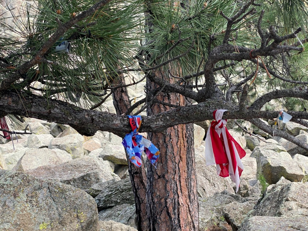 Paved path around the Tower. This Tower is in the 1977 movie Close Encounters of the Third Kind.People left stuff tied to the treesView from the topView on the way down2 whitetail deer in a meadow near the campgroundWild turkeys running through the campgroundMy steps yesterday!!!