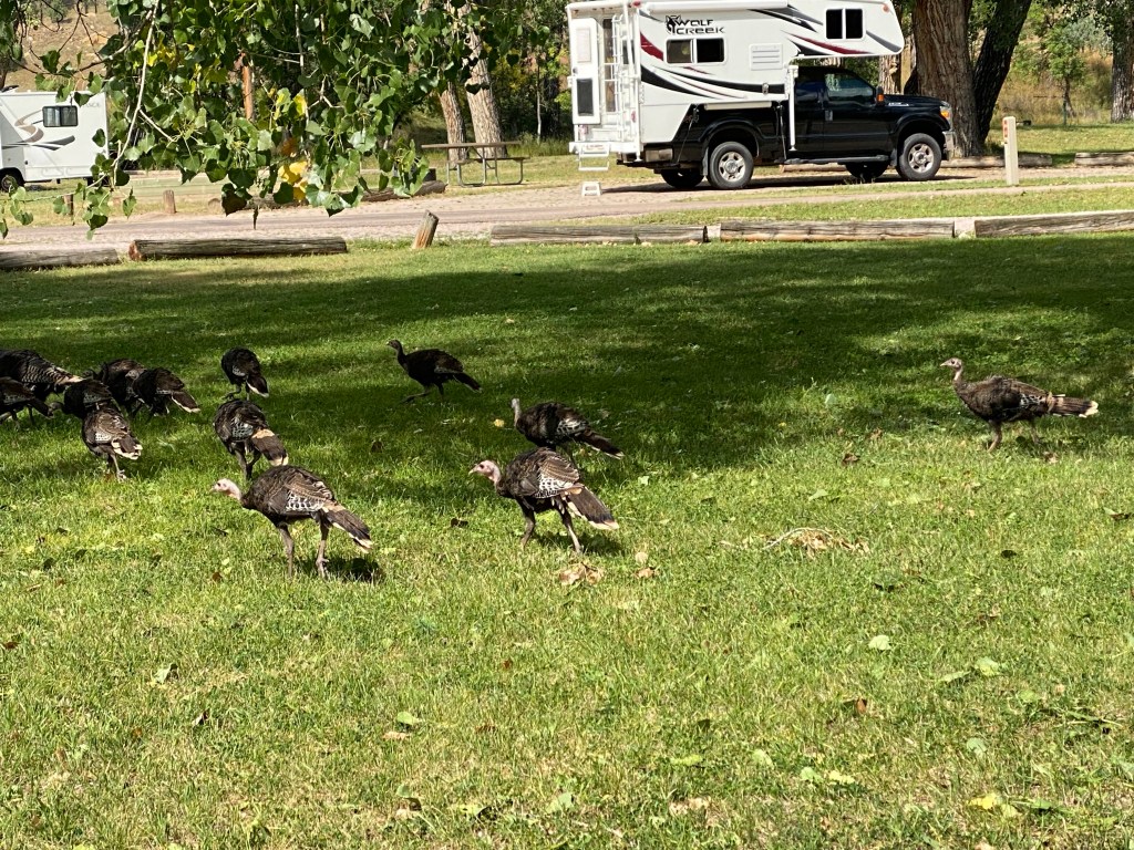 We are staying at Elks Lodge 1187, the nicest Elks we have stayed at. They have a ton of property including a Grille, an RV park with full hook ups and a golf course with a driving range and everything else you’d expect to find. We are in their very roomy parking lot with a huge grassy area next to us. $25 a night for us. $55 for the people at the hook ups. Accommodations in this area are pricey being so close to Mt Rushmore and other attractions. Other RV parks are $125/night.