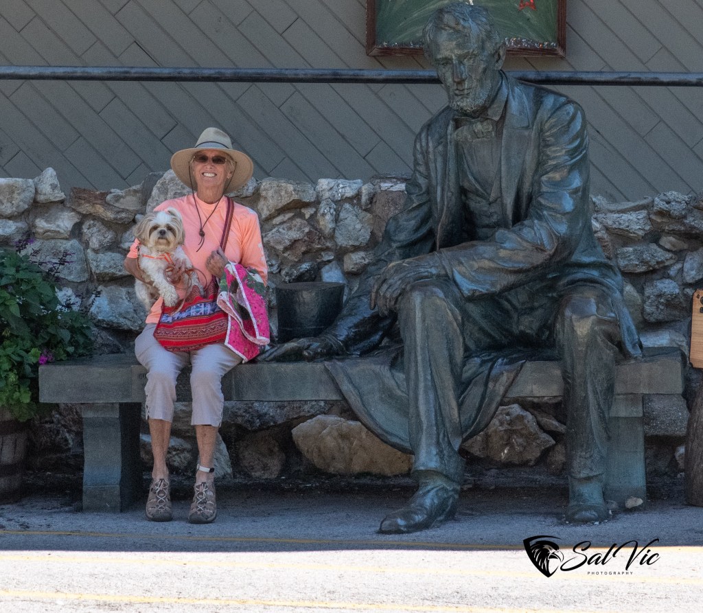 Here is Zoe and me sitting next to a statue of Lincoln.