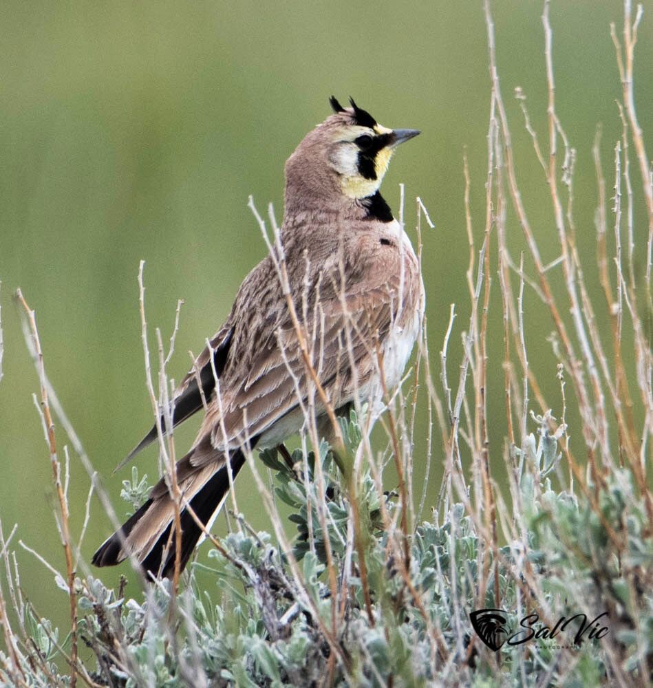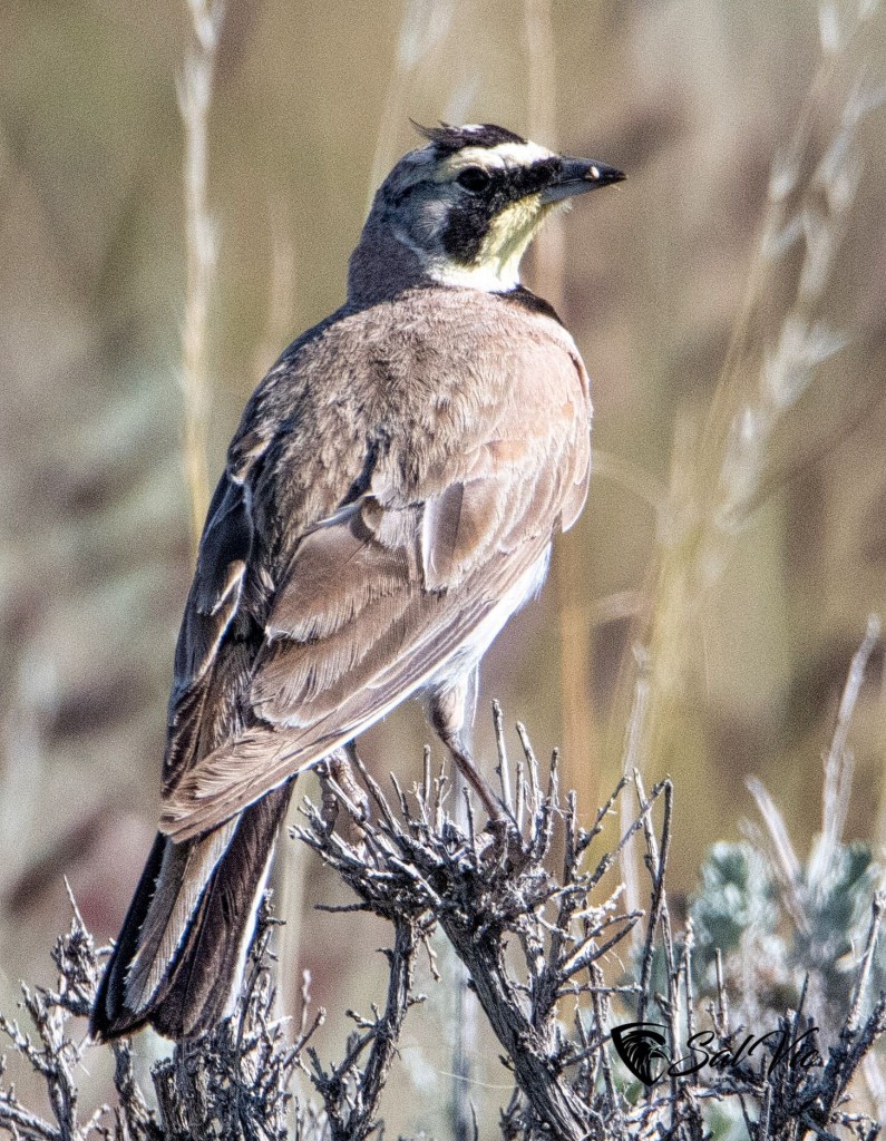This is our view/backyard. We’ve been hearing birdsong that sounded like a meadow lark but could not see it. Finally we not only saw it we got a shot of it. It’s a horned lark.