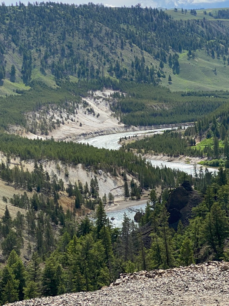 It’s a campground without power (only 6 spaces have power) surrounded by mountains. Tomorrow we’ll go into Yellowstone looking for animals. A fee days ago we saw bison, elk and bears.