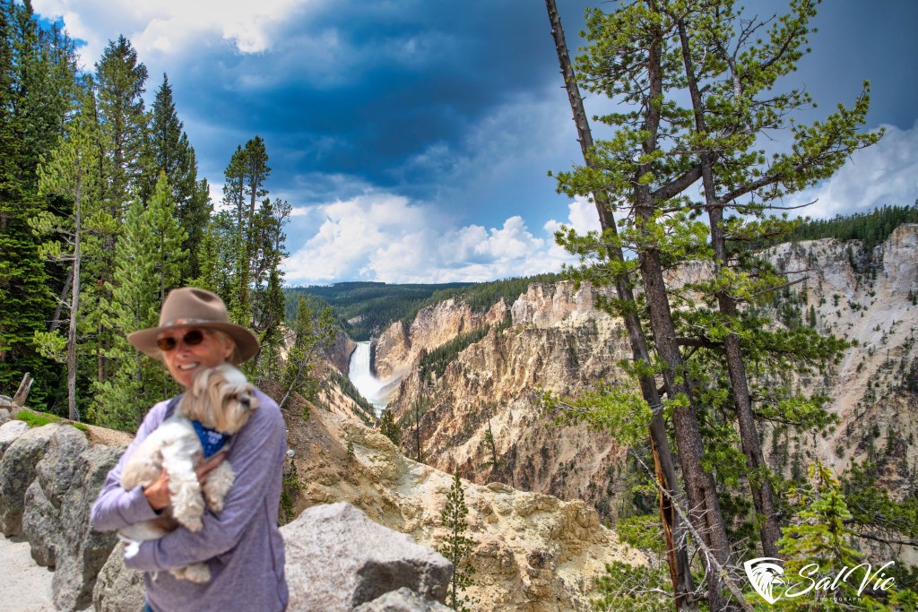 Yellowstone Falls (that’s my new hat, a stetson) (and Zoe has on her “bark ranger” kerchief)