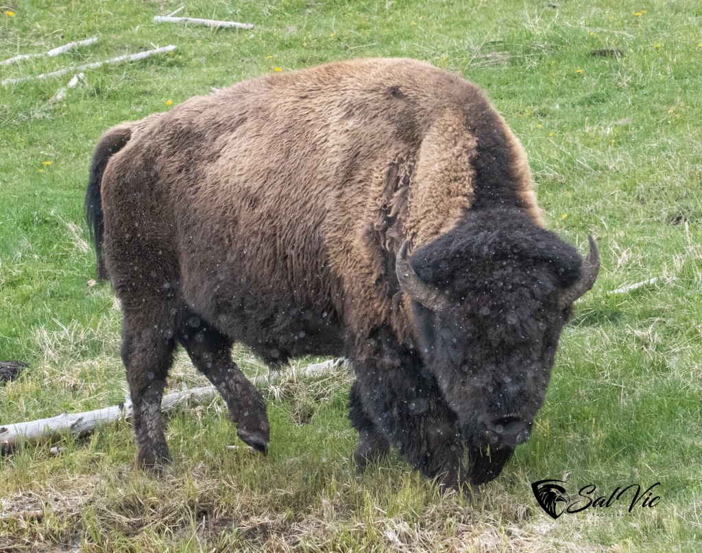 We got up at 5 am and were on the road soon thereafter. Our plan was to get to Lamar Valley where the wolves are. After driving a couple of hours we found that the road was closed. On the way back we saw several bison walking along the side of the road. They each were by themselves, it was not a group thing. They were close enough I could have reached out my hand and touched it (but of course I didn’t!).