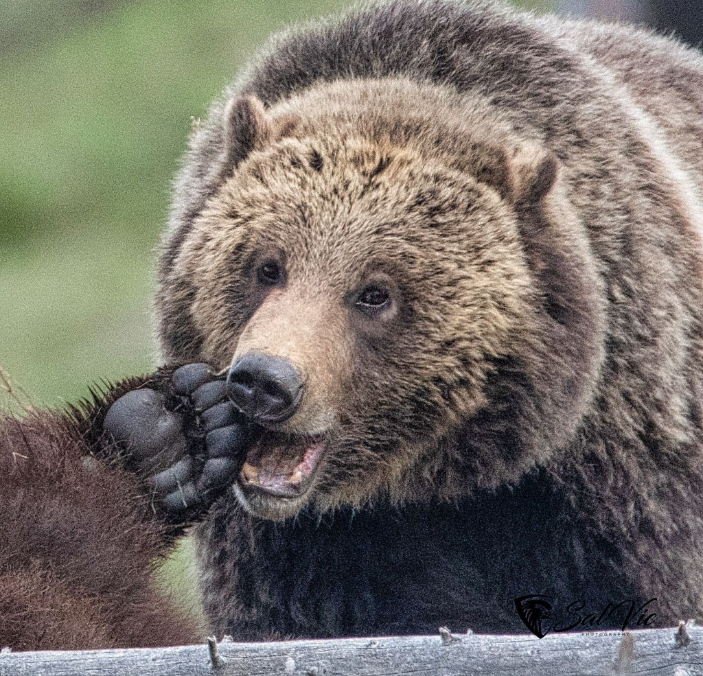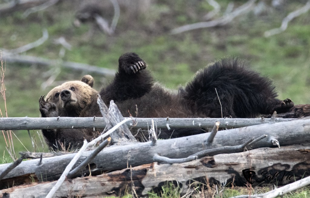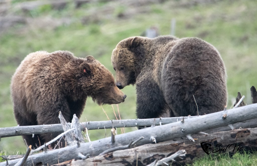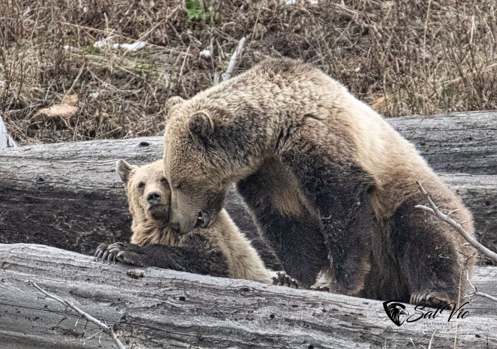 The grizzly bear on the left with the lighter face is Jam. The darker faced grizzly with her is her boyfriend we are calling Toast. Doesn’t this look like an engagement picture?