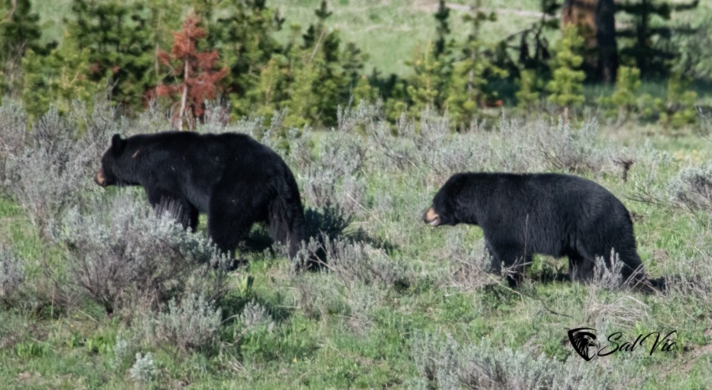 We drove into Yellowstone this morning, looking for wildlife. We noticed several cars clustered st an overlook. We couldn’t even find a parking space so I got out and walked up while Vic drove part way down the hill and waited.