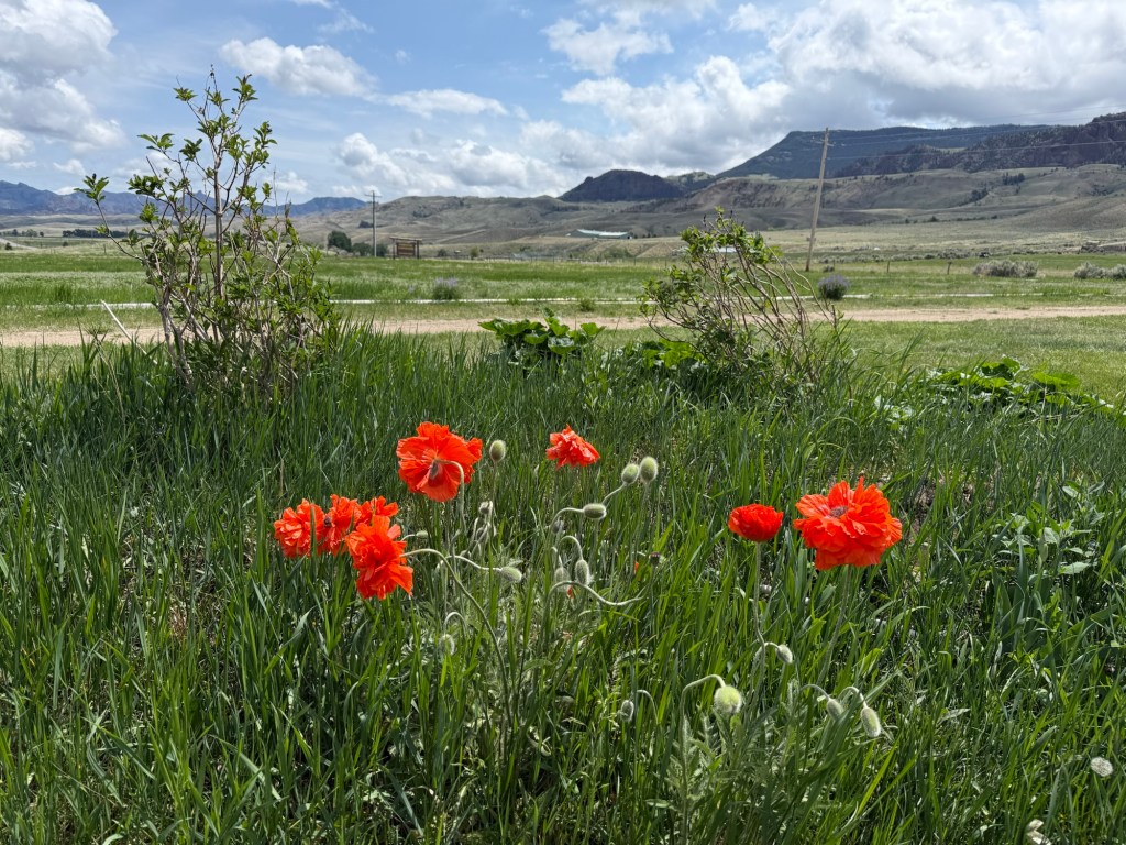 Oriental poppies in the campground. They come back every year even if they accidentally get mowed over.