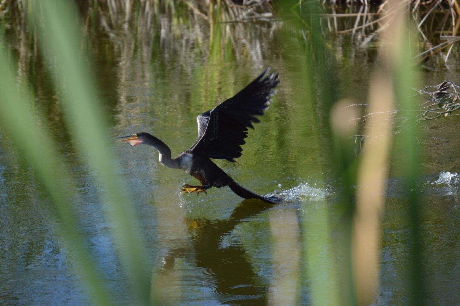 This bird does not have oil glands so it has to dry off its wings before taking flight.