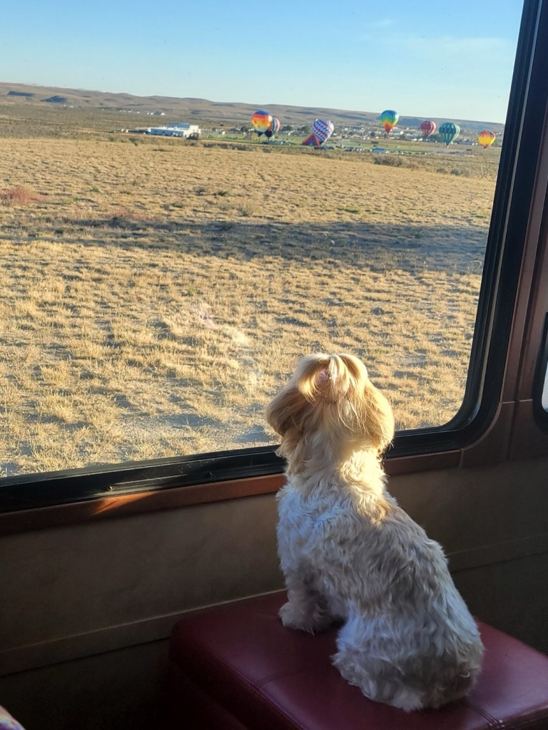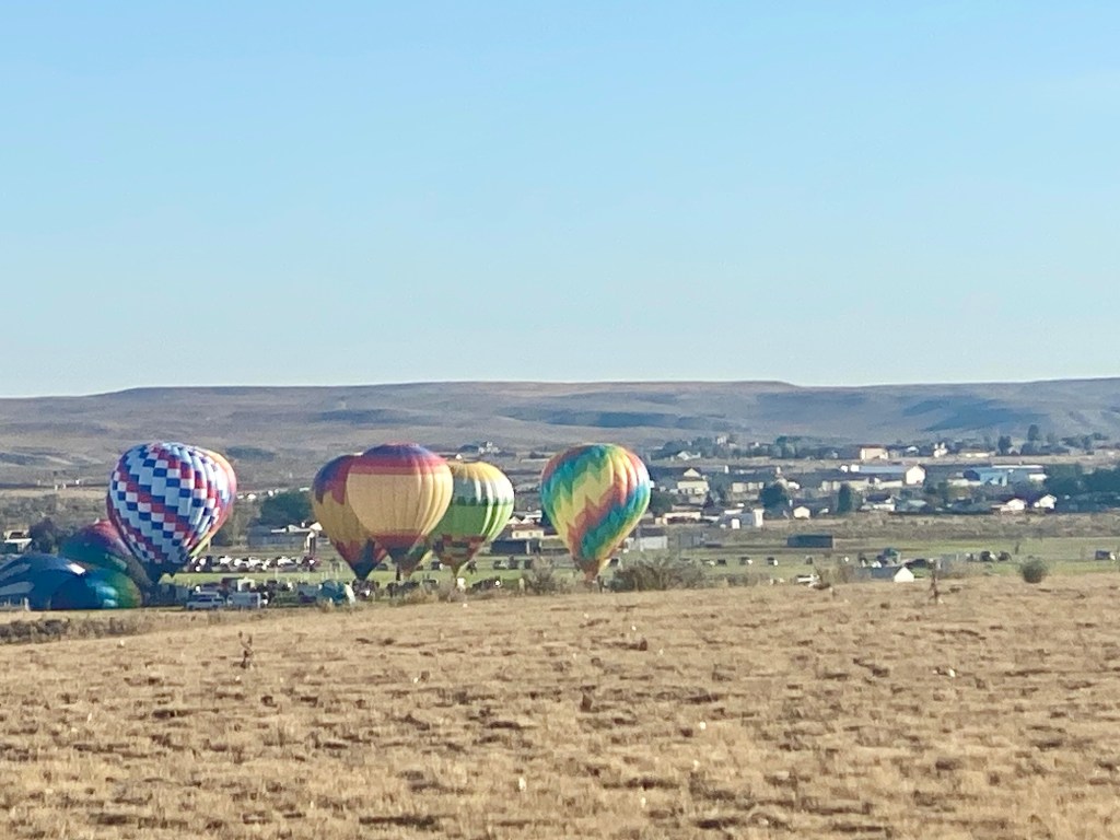 There is a hot air balloon festival this weekend. The balloons are clearly visible from her backyard. Talk about best seats in the house 😊. We were out early to watch the show this morning and were enjoying it until we realized they weren’t going up today.