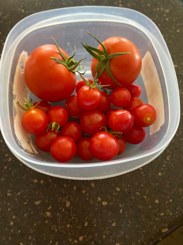 We are enjoying tomatoes from her garden.